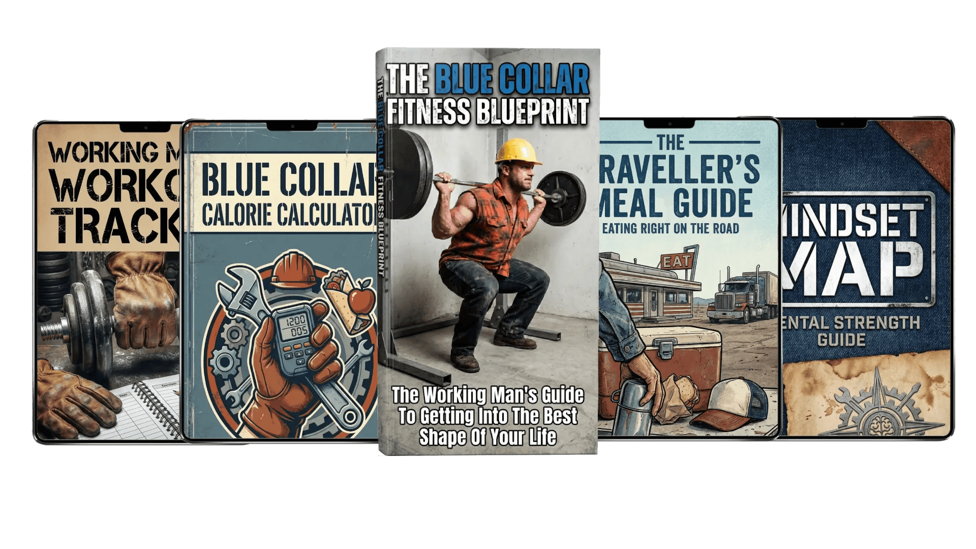 You are getting a copy of the Blue Collar Fitness Blueprint, available instantly. You are getting my personal Working Man's Workout Tracker. You are getting my super useful Calorie Tracker. You are getting the Mindset Map. You are getting our My Traveller's Roadmap, of strategies I personally used to keep making progress while being on the road for weeks and months at a time.
